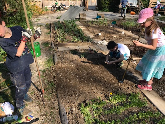 Unsere Kindergruppe vom JBN findet einmal monatlich statt. Im März bekamen die Kinder kleine Saattütchen mit Töpfchen mit und sollten diese bis zum nächsten Termin einpflanzen und pflegen. Und siehe da- jedes Kind brachte kleine grüne Pflänzchen mit, die wir dann in den Beeten des Gröbenzeller Pflanzlgartens ( ein urban-gardening-projekt) einsetzten.