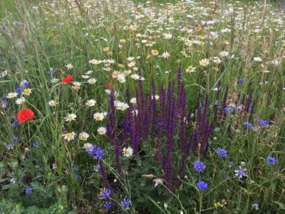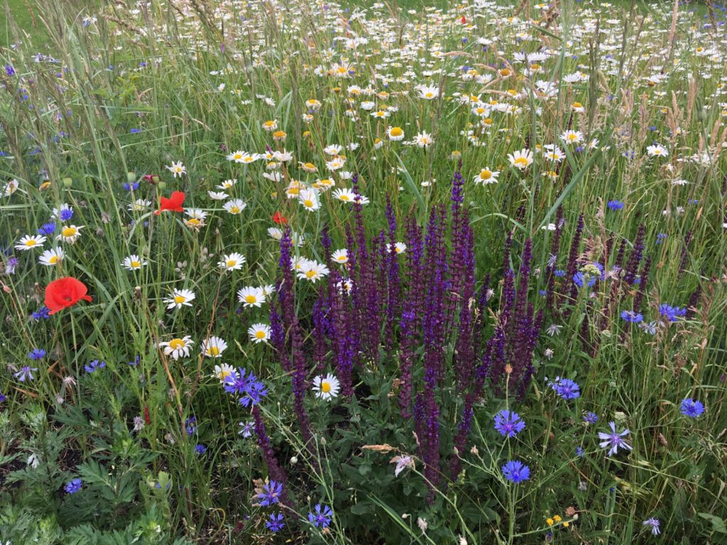 Acker-Rittersporn (Consolida ajacis), Akelei (Aquilegia vulgaris), Barbarakraut (Barbarea vulgaris), Dill (Anethum graveolens), Blutweiderich (Lythrum salicaria), Boretsch (Borago officinalis), Eselsdistel (Onopordum acanthium), Fenchel (Foeniculum vulgare), Schwarze Teufelskralle (Phyteuma nigrum), Färberkamille (Anthemis tinctoria), Flockenblume (Centaurea cyanus), Hornschotenklee (Lotus corniculatus), Herzgespann (Leonurus cardiaca), Kamille (Matricaria recutita), Nesselblättrige Glockenblume (Campanula trachelium), Pfirsichblättrige Glockenblume (Campanula persicifolia), Rapunzel-Glockenblume (Campanula rapunculus), Habichtskraut (Hieracium aurantiacum), Gelbes Habichtskraut (Hieracium biennis), Hasenklee (Trifolium arvense), Heilziest (Betonica officinalis), Johanniskraut (Hypericum perforatum), Judaspfennig (Lunaria annua), Karthäusernelke (Dianthus carthusianorum), Inkarnatklee (Trifolium incarnatum), Geruchslose Kamille (Tripleurospermum maritimum subsp. inodorum), Echte Kamille (Matricaria recutita), Knoblauchsrauke (Alliaria petiolata), Kornblume (Centaurea cyanus), Kornrade (Agrostemma githago), Kuckuckslichtnelke (Lychnis flos-cuculi), Echtes Labkraut (Galium verum s. str.), Saat-Leindotter (Camelina sativa), Schweden-Klee (Trifolium hybridum), Stauden-Lein (Linum perenne), Wiesen-Glockenblume (Campanula patula), Mädesüß (Filipendula ulmaria), Wilde Malve (Malva sylvestris), Wilder Majoran (Origanum vulgare), Mauritianische Malve (Malva sylvestris Mauritiana), Wegmalve, Moschusmalve (Malva moschata), Mariendistel (Silibum marianum), Klatschmohn (Papaver rhoeas), Wilde Möhre (Daucus carota), Nachtkerze (Oenothera biennis), Nickende Kratzdistel (Carduus nutas), Kleiner Odermennig (Agrimonia eupatoria), Öl-Lein (Linum usitatissimum), Ochsenauge (Buphthalmum salicifolium), Färber-Resede (Reseda luteola), Rossminze (Mentha longifolia), Rote Lichtnelke (Silene dioica), Schafgarbe (Achillea millefolium), Schnittlauch (Allium schoenoprasum), Sichelklee (Medicago falcata s. str.), Seifenkraut (Saponaria officinalis), Weißer Steinklee (Melilotus albus), Echter Steinklee (Melilotus officinalis), Tausendgüldenkraut (Centaurium erytraea), Wiesen-Pippau (Crepis biennis), Wegwarte (Cichorium intybus), Wiesen-Storchschnabel (Geranium pratense), Wiesen-Kerbel (Anthriscus sylvestris s. str.), Wiesenkümmel (Carum carvi), Wiesenmagerite (Leucanthemum vulgare), Wiesensalbei (Salvia pratense), Wilde Karde (Dipsacus sylvestris), Rispen-Flockenblume (Centaurea jacea), Frauenspiegel (Legousia speculum-veneris), Acker-Wittwenblume (Knautia arvensis), Wiesen-Flockenblume (Centaurea jacea), Engelwurz (Angelica sylvestris), Wucherblume (Chrysanthemum segetum), Bitter-Lupine (Lupinus angustifolius), Luzerne (Medicago sativa), Waldstaudenroggen (Secale cereale), Käse-Pappel, Saat-Erspasette (Onobrychis sativa), Ringelblume (Calendula officinalis), Fingerhut (Digitalis purpurea), Rainfarn (Tanacetum vulgare), Sommer Flieder (Buddleja)