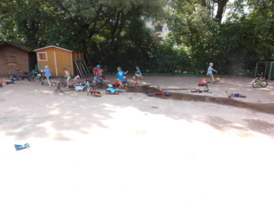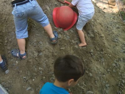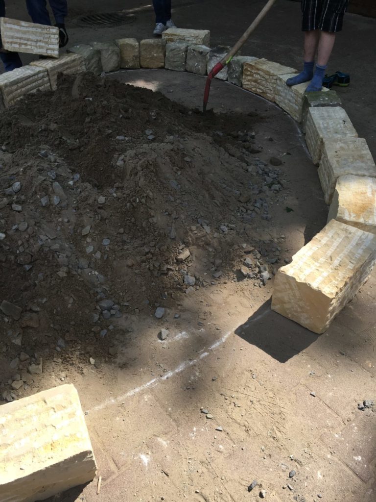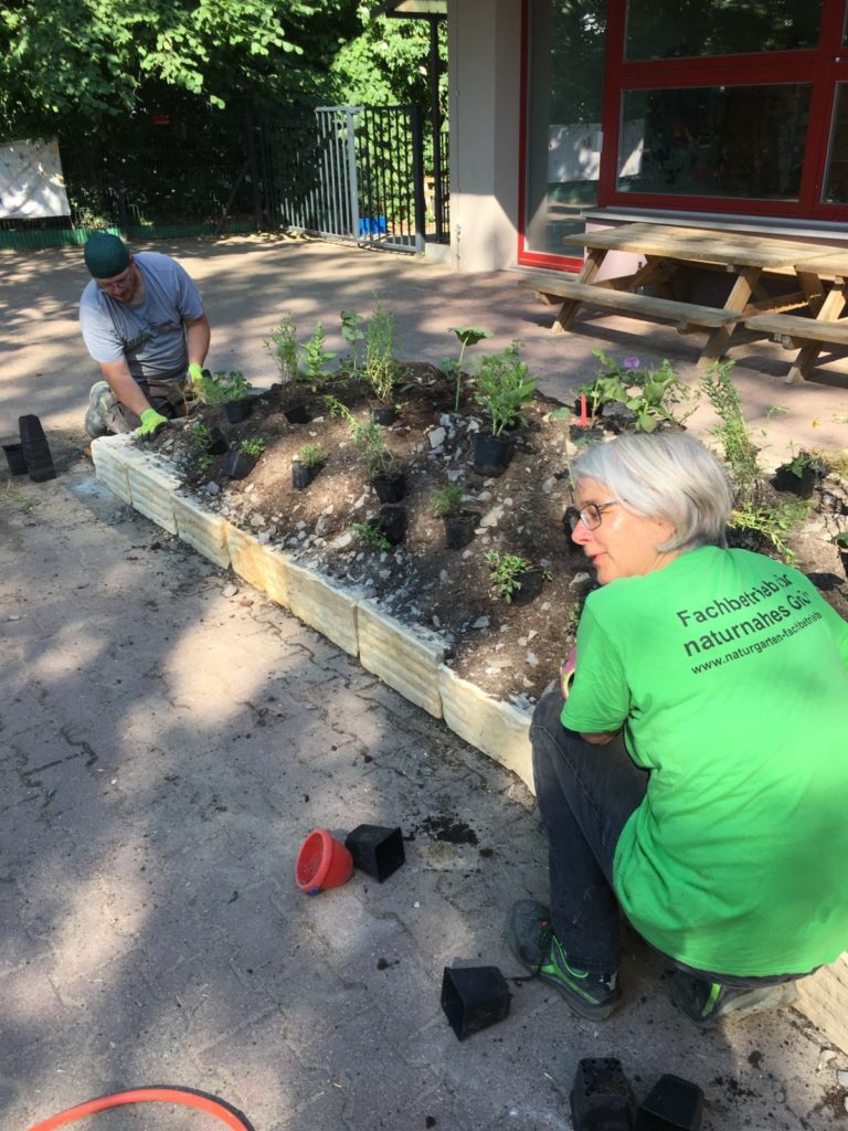 Die Garten AG ist eine Elterngruppe, die sich im Zusammenhang mit dem Naturerlebnisgarten gegründet hat und zu vielen Aktionen rund um den Naturerlebnisgarten aktiv ist. Am 25./26. Mai wurden alle 90 Familien der Kita eingeladen und 30 Familien haben gemeinsam einen Berg versetzt. Drei Trockenbeete sind in dieser Wochenendaktion entstanden. Die Aktion wurde von Grün macht Schule - Kindergarten finanziell getragen und von der Landschaftarchitektin Renate Froese- Genz professionell begleitet.