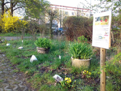 Seit 2017 gestalten engagierte Bürger wir in Baumschulenweg öffentliche Grünflächen und Baumscheiben bienenfreundlich.