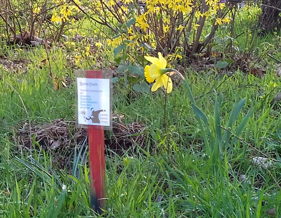 Fette Henne, Taglilien, Krokusse, Vergißmeinnicht, Ringelblumen, Lupinen, Bienenfreund, Primeln, Narzissen, Traubenhyazinthen, Kamille.