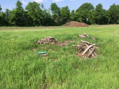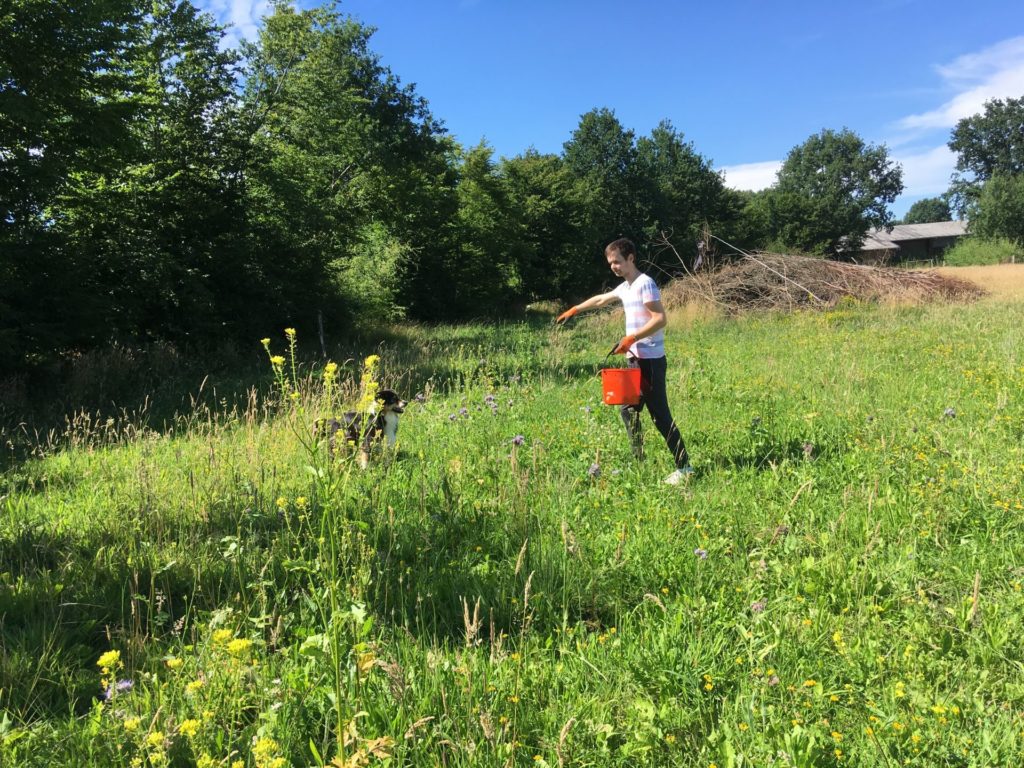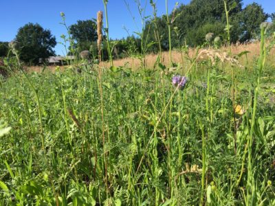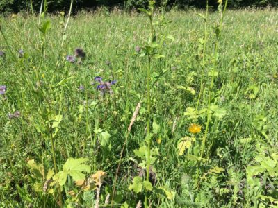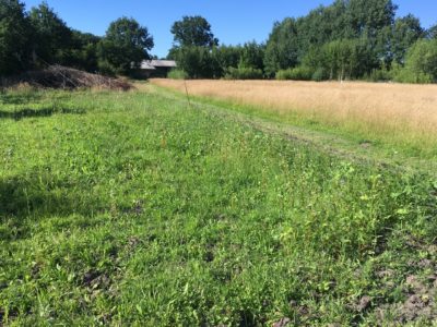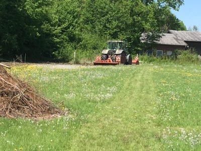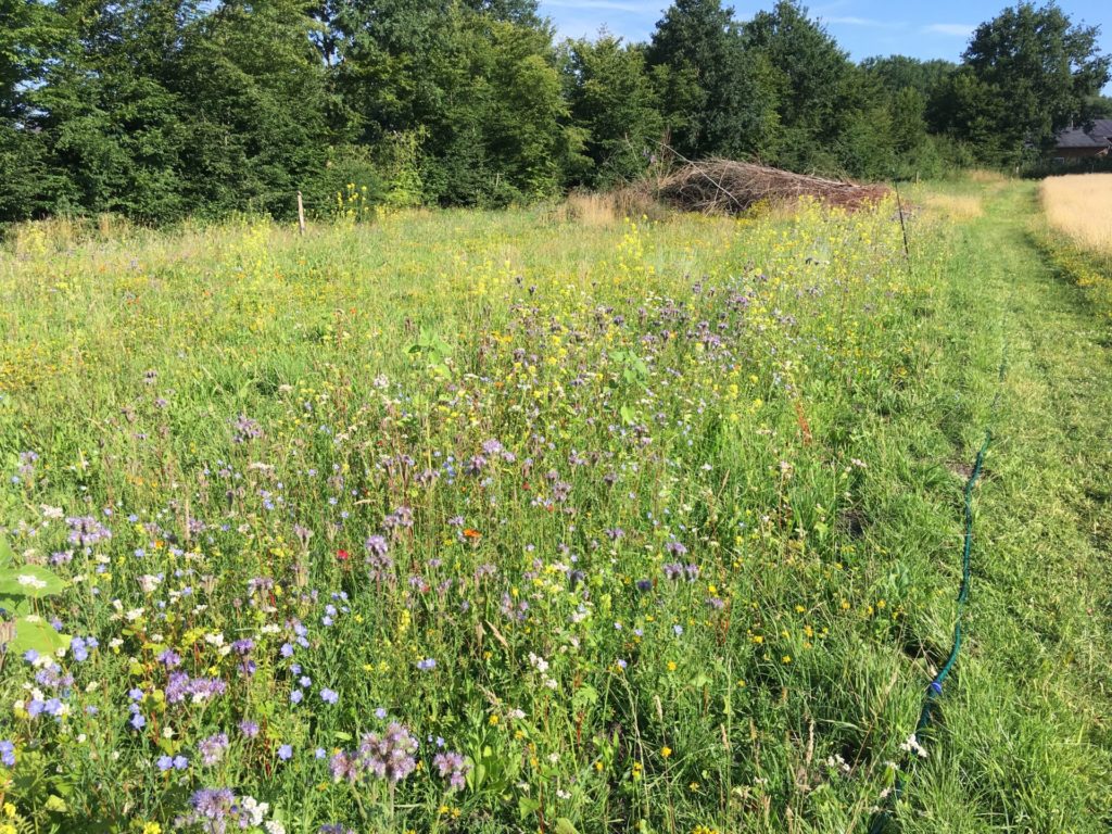 Unsere Matschwiese wird ab sofort nicht mehr gemäht. Und die Fläche, wo letztes Jahr der Trecker beim Knickschnitt so tiefe Spuren hinterlassen hat, wird gefräst und eine Bienenwiese entstehen. Wir sind gespannt.
