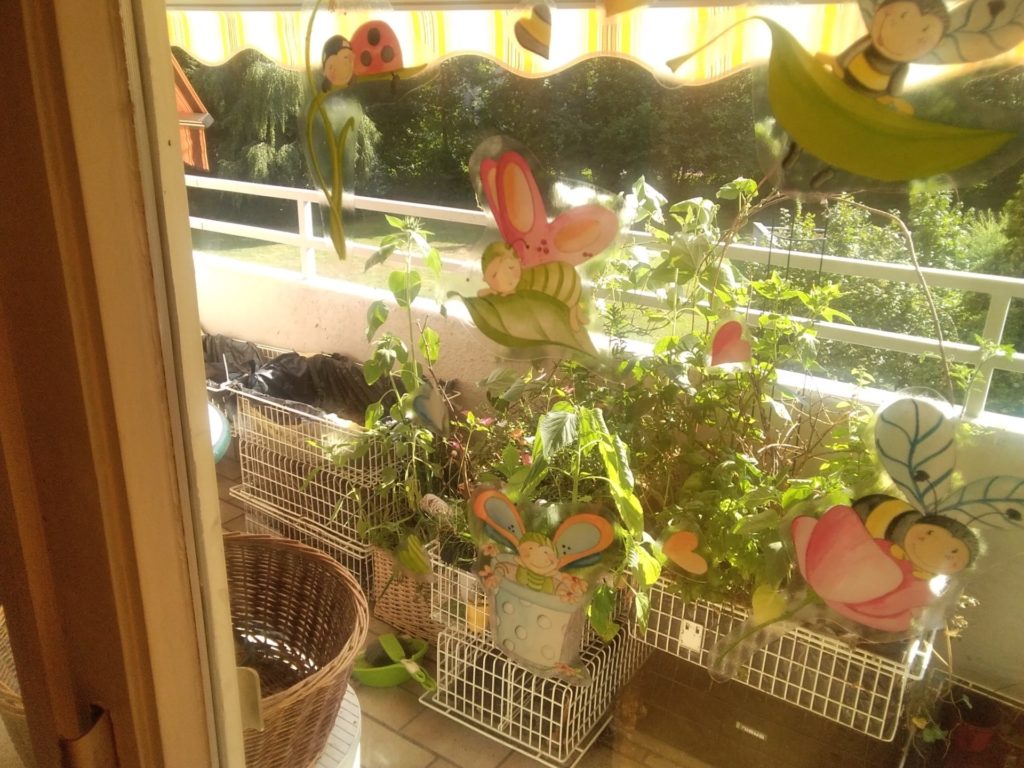 Hallo zusammen, ich wohne im Westen von Erlangen in einer 1-Zimmer-Wohnung, die einen Südbalkon hat – nachdem ich in meinem Winterstiefel ein hübsches Papiernest einer Wespenart bekommen habe und auch noch ein Rosenkäfer, Heuhüpfer und Marienkäfer mit 3 Punkten beim Frühjahrsputz gefunden wurden, habe ich mich entschlossen den Balkon umzuwandeln in einen Hortus. Es ist ein kleiner Garten, was Hortus übersetzt bedeutet, es kann ein kleiner vertikaler Lebensraum sein ,ein Insekten und Vögelchen Paradies werden. Ich möchte gerne Inspiration sein , das noch mehr in unserem Haus sich trauen ,etwas zu tun, für unsere vom Aussterben bedrohte Insektenwelt.