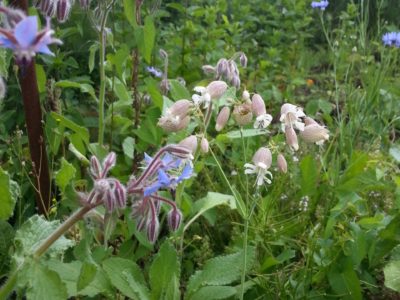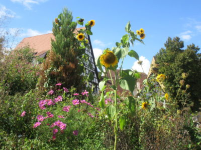 Verschiedene Kräuter, Blumensamen, Zwiebelpflanzen. Ganz viele Kornblumen, Sonnenblumen, diverse Wildblumen, Königskerzen, Akelei, Lungenkraut, Frauenmantel.