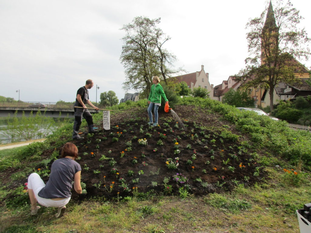 Die Fläche, welche wir hier vorstellen, wurde bis 2016 nicht genutzt. Ein leerer, mit Gras bewucherter Hügel, jedoch attraktiv gelegen, direkt am Donau Radwanderweg. Wir wollten hier eine Oase für die Menschen und vorallem für die Insekten schaffen. Wenn wir die Bilder ansehen, wie es heute ist, finden wir - es ist uns gelungen! Bitte schaut unbedingt auch unseren Beitrag in der Mediathek des BR an - die Sendung Querbeet hat hier über uns berichtet! Dort ist auch zu sehen, mit welcher Freude trotz strömendem Regen die Bürger, vorallem die Kinder, mithelfen.