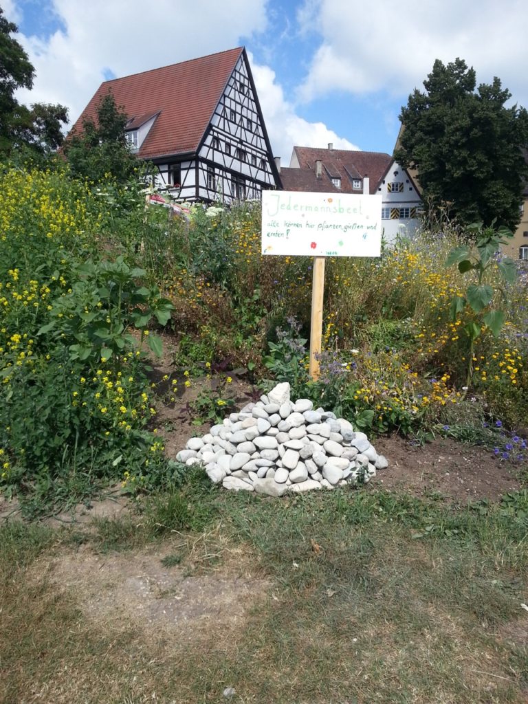 Unsere Gruppe ist aus dem Arbeitskreis Lebenswertes Lauingen heraus entstanden. Gruppenleiter ist Simone Winkler. Die Pressearbeit läuft über Facebook und die regionale Zeitung. Am 28.05.18 wurde im BR in der Sendung Querbeet über unser Beet berichtet. Im Beitrag sieht man, dass viele bienenfreundliche Pflanzen den Hügel bereichern. https://www.br.de/mediathek/video/gemeinschaftsgarten-jedermannsbeet-lauingen-av:5b0c3ce7cf4fbc00186043fe
