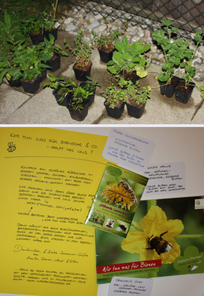 Wir haben dieses Jahr in unserem kleinen Garten mit kleinem Budget einiges umgestaltet. Wo letztes Jahr pflegeintensiver Rasen war konnten wir dieses Jahr ganz viele spannende Entdeckungen machen: z.B. Bläulinge, Zitronenfalter, 22-Punkt-Marienkäfer, grazile Feldwespen und ganz ganz ganz viele kleine Biensche und Hummeln sehen :D