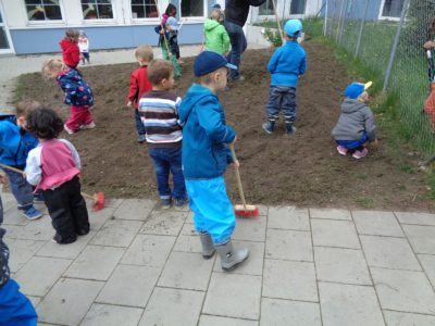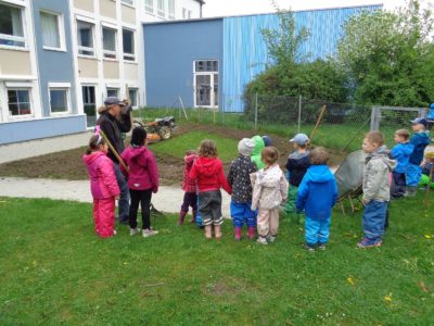 Mit Unterstützung unseres Elternbeirats haben wir in einer schweißtreibenden Aktion unsere Wiese aufbereitet und bepflanzt.