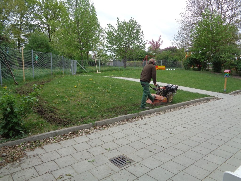 Mit Unterstützung unseres Elternbeirats haben wir in einer schweißtreibenden Aktion unsere Wiese aufbereitet und bepflanzt.