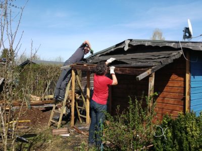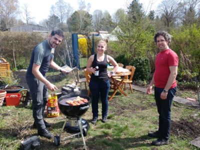 Wir (Christopher und Verena) pachten diese Kleingartenparzelle zu zweit. Unsere Familien unterstützen uns zum Glück mit Rat und (ab und zu mit) Tat! Verenas Schwester Miriam und deren Freund Cata haben sich schnell vom Pflanzwettbewerb überzeugen lassen und sind der Gruppe beigetreten. Wir haben den Vereinsvorstand über den Pflanzwettbewerb informiert, auf einer Mitgliederversammlung wurde der Wettbewerb dann allen Vereinsmitgliedern vorgestellt.