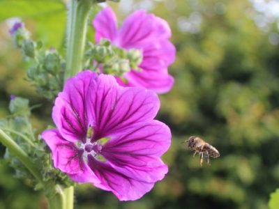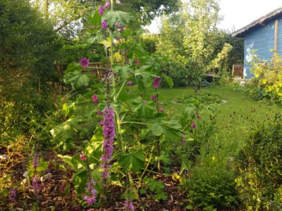 Lange Blütezeit, Wildstaude, Insektenweide. Die Pflanze haben wir erfolgreich selbst ausgesät! Die Samen hatten wir bei Saatgut-Vielfalt bestellt. - Wilde Malve (Malva sylvestris)