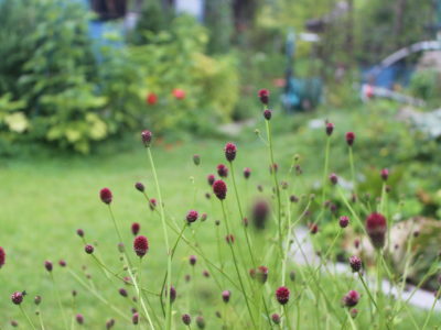 Hat sehr schön geblüht, schwächelt jetzt etwas. Mal sehen ob wir sie dauerhaft im Beet halten können. - Purpur-Wiesenknopf (Sanguisorba officinalis ‘Tanna’)