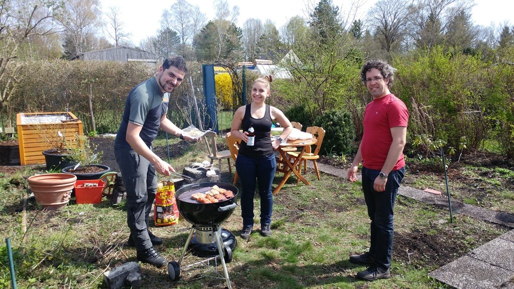 Wir (Christopher und Verena) pachten diese Kleingartenparzelle zu zweit. Unsere Familien unterstützen uns zum Glück mit Rat und (ab und zu mit) Tat! Verenas Schwester Miriam und deren Freund Cata haben sich schnell vom Pflanzwettbewerb überzeugen lassen und sind der Gruppe beigetreten. Wir haben den Vereinsvorstand über den Pflanzwettbewerb informiert, auf einer Mitgliederversammlung wurde der Wettbewerb dann allen Vereinsmitgliedern vorgestellt.