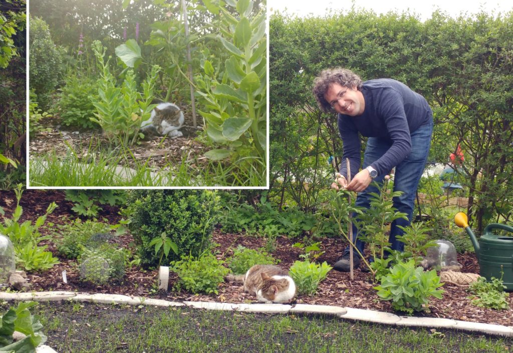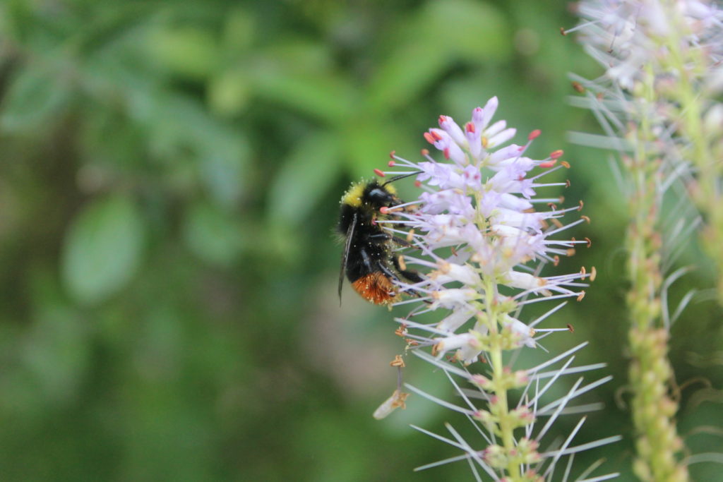 Ahhhh! Wir hatten nicht bedacht, was die Katzen damit anstellen würden! Innerhalb weniger Tage war die Katzenminze abgeknabbert… Wir haben sie jetzt mit Draht geschützt, damit sie sich wieder erholen kann. Vielleicht muss die Pflanze erst etwas wachsen, bis wir die Katzen darauf loslassen können. Blüten gibt es dieses Jahr wohl nicht… - Rosa Spierstaude (Filipendula rubra ‘Venusta’). Federartige, rosa Blütenständen, die auch im Winter gut aussehen. Von uns vor allem wegen der schönen Blüten ausgewählt, wird in manchen Quellen aber auch als Bienenweide angegeben.