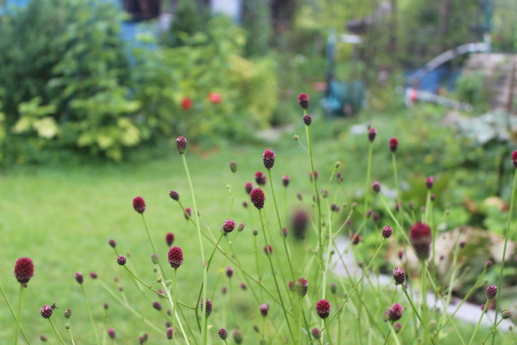 Hat sehr schön geblüht, schwächelt jetzt etwas. Mal sehen ob wir sie dauerhaft im Beet halten können. - Purpur-Wiesenknopf (Sanguisorba officinalis ‘Tanna’)