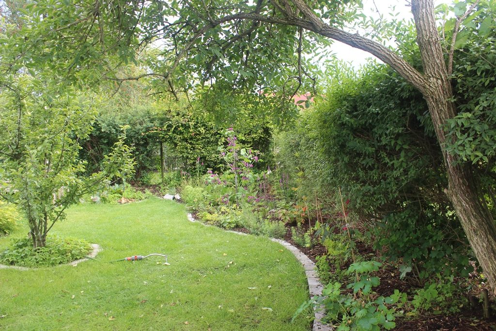Im hinteren Maulwurfsgarten wachsen außerdem einige Himbeeren, die wir langfristig in den vorderen Garten zum Gemüsebeet umsiedeln möchten.