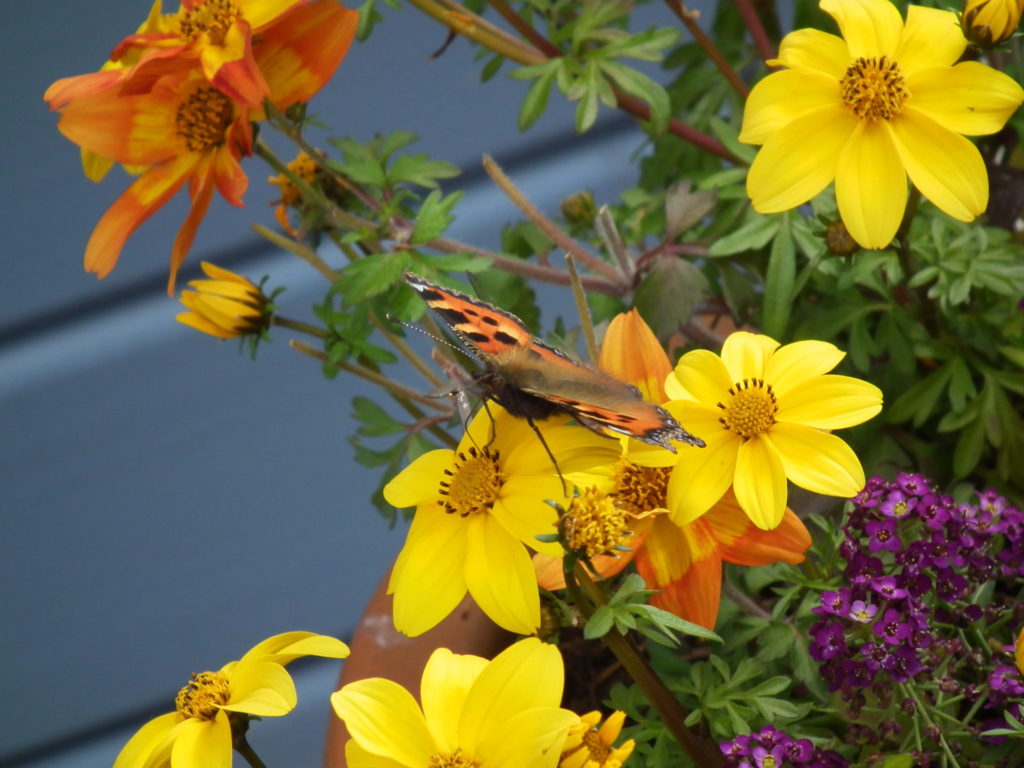Auf unserer neu angelegten Terrasse haben wir jetzt ein Paradies für Bienen und Schmetterlinge geschaffen.