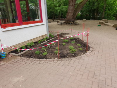 Wir haben einige brachliegende Flächen, die wir nun zeitnah mit den Kindern so bearbeiten möchten, dass wir sie bepflanzen können. Dabei ist uns wichtig, dass wir durch die Bepflanzung möglichst Bienen und Vögeln vielfältige Nahrungsquellen anbieten.