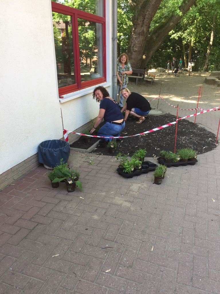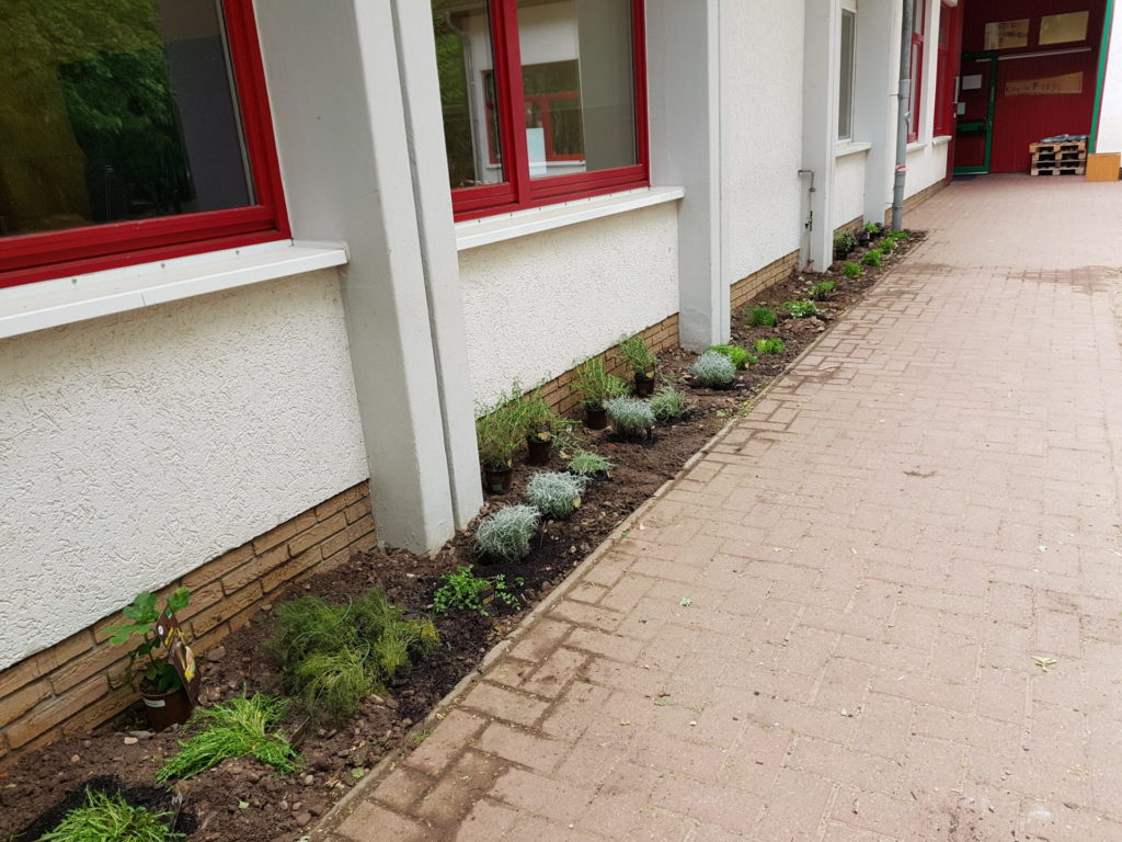Wir haben einige brachliegende Flächen, die wir nun zeitnah mit den Kindern so bearbeiten möchten, dass wir sie bepflanzen können. Dabei ist uns wichtig, dass wir durch die Bepflanzung möglichst Bienen und Vögeln vielfältige Nahrungsquellen anbieten.