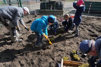 Eine zweite Fläche bepflanzten wir als Kräutergarten seitlich auf dem Schulgelände mit insektenfreundlichen Kräutern und Sträuchern.