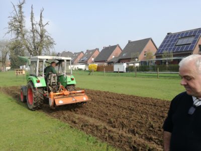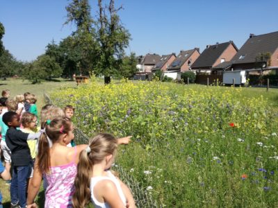 Dann konnten wir mithilfe des Bauamtes unserer Gemeinde Gangelt und der unteren Landschaftsbehörde des Kreises Heinsberg eine Fläche von 50 qm vor dem Schulgebäude aufbereiten, einsäen und mit einem Staketenzäunchen einfassen.