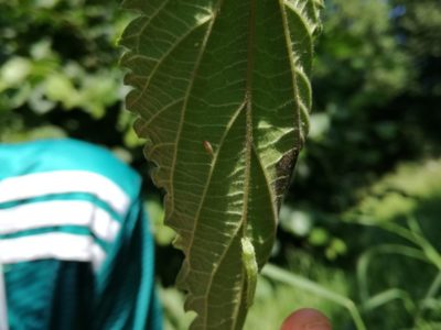Ein weiteres Hotel fand am Waldrand neben einer Wildschutzfläche, die wir mit den Revierpächtern eingesät hatten, seinen Platz. Darin haben inzwischen schon Bienen ein neues Zuhause gefunden, denn die von uns gebohrten Löcher im angebohrten Eichenholz sowie das Mark in den toten Himbeerästen sind von den Tierchen bewohnt und zugestopft worden.