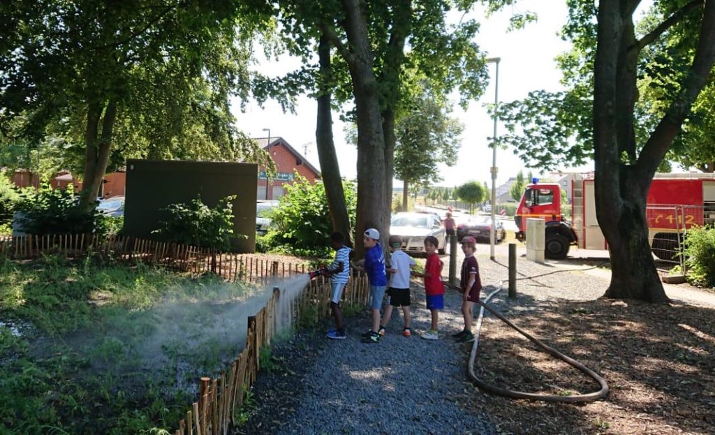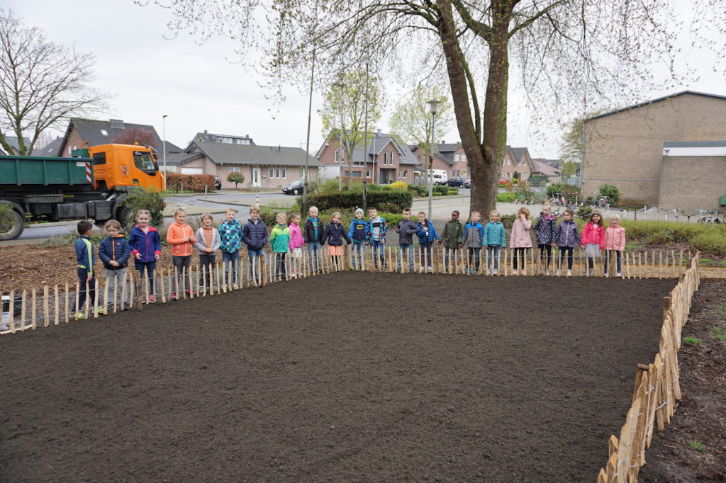 Dann konnten wir mithilfe des Bauamtes unserer Gemeinde Gangelt und der unteren Landschaftsbehörde des Kreises Heinsberg eine Fläche von 50 qm vor dem Schulgebäude aufbereiten, einsäen und mit einem Staketenzäunchen einfassen.