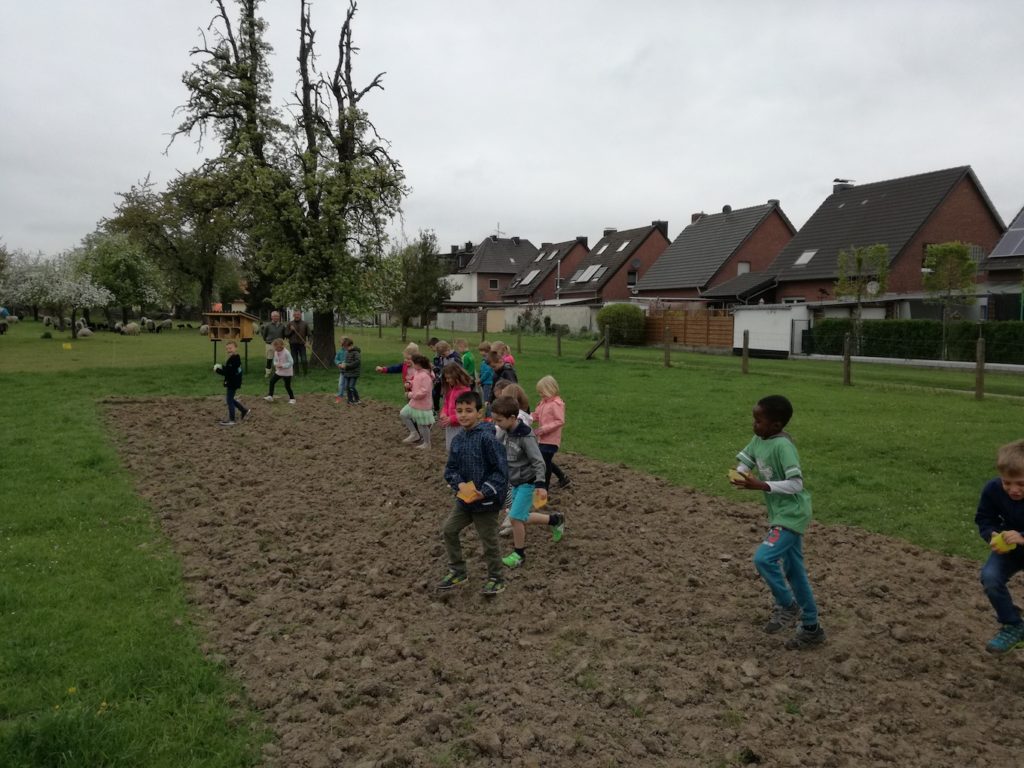 Für uns bereiteten die Männer zwei weitere Äcker auf, damit wir Kinder dort Saatgut für Wild und Insekten einbringen konnten.