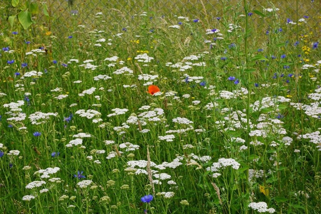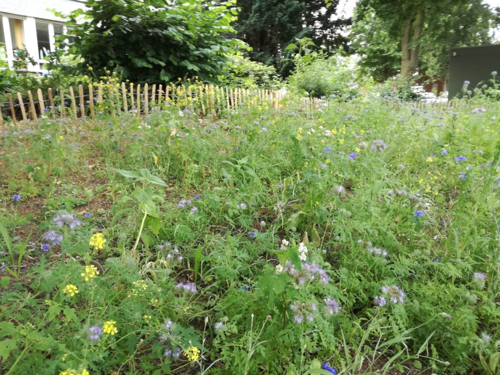 - In “E`s Wiese”neben unserer Schule, 100 qm: Saatgut Blumenwiese Nr. 01, Blühende Landschaft Nr. 23 von Rieger-Hofmann und im dritten Abschnitt Schmetterlings- und Wildbienenwiese Nr. 08 von Rieger-Hofmann
