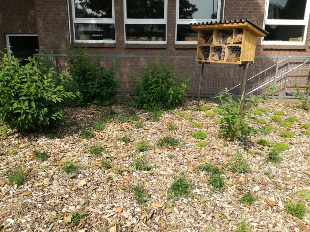 Eine zweite Fläche bepflanzten wir als Kräutergarten seitlich auf dem Schulgelände mit insektenfreundlichen Kräutern und Sträuchern.