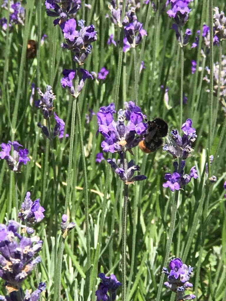 - Im Schulkräuterbeet, 70 qm: Thymian, Lavendel und Rosmarin, Flieder und Weigelie sowie einer Hecke aus Holunder, Weißdorn und Schlehdorn