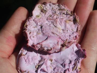 Samenpapier mit Wildblumensamen, 10% des Umsatzes wird an Umweltprojeke gespendet.