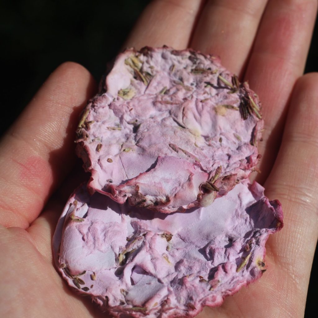 Samenpapier mit Wildblumensamen, 10% des Umsatzes wird an Umweltprojeke gespendet.