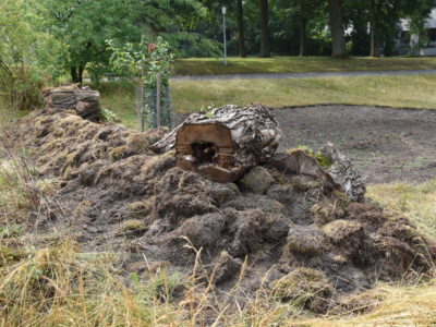 In einem Totholzhaufen, der auf dem Projektgelände aufgeschichtet wurde, finden Bienen weitere Nistmöglichkeiten und Schutz vor Witterung.
