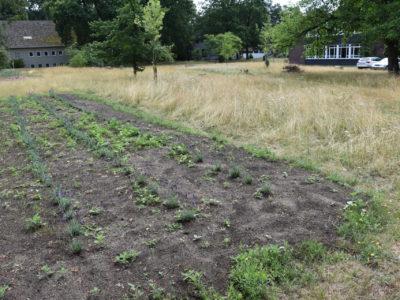 Die Projektgruppe legte einen Blühstreifen an, mit einer bienenfreundlichen Wildackermischung aus Sonnenblumen, Malven, verschiedenen Gräsern, Bienenfreund und Dinkel.