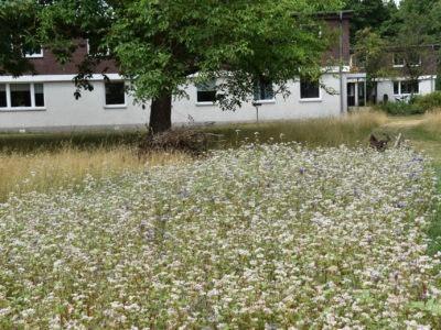 Auf dem Stammgelände der Diakonischen Stiftung, einem Träger der Jugendhilfe und der Behindertenhilfe, wurde eine ca. 2.500 m2 große Rasenfläche bienenfreundlich umgestaltet. Die Wiese ist Teil eines 30 Hektar großen, naturnahen Betriebsgeländes rund um den Bach „Lutter“. Sie befindet sich zwischen einem der Verwaltungsgebäude und einem geschotterten Parkplatz. Mitarbeitende des sogenannten Grünen Bereichs sowie Klientinnen und Klienten der Einrichtung pflanzten gemeinsam im Rahmen der tagesstrukturierenden Hilfen Blumen und Sträucher, die in wechselnder Blühfolge Bienen von März bis Oktober Nahrung bieten. Weiterer Maßnahmen haben zudem die Fortpflanzungs- und Überwinterungsmöglichkeiten verbessert, insbesondere für Wildbienen, deren Populationen in den letzten Jahren stark zurückgegangen sind. Menschen mit und ohne Behinderung möchten so einen Beitrag zum Erhalt der Artenvielfalt und gegen das Insektensterben leisten.