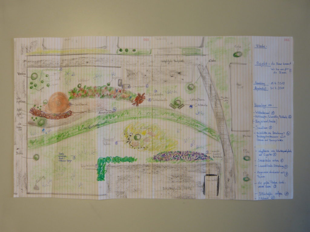 Mit folgenden Maßnahmen wurde die Wiese zwischen April und Juli bienenfreundlich umgestaltet: