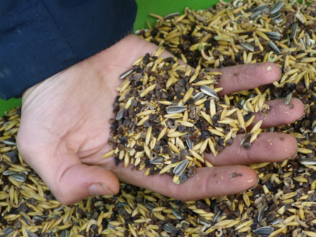 Wildackermischung aus Sonnenblumen, Malven, verschiedenen Gräsern, Bienenfreund und Dinkel
