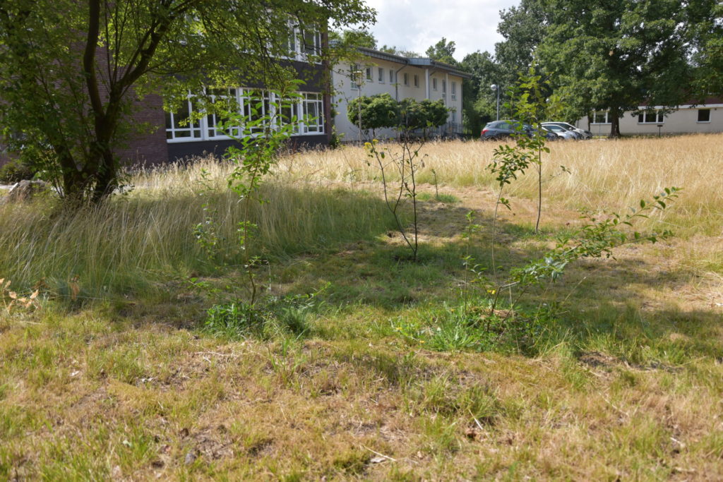 Bienennährgehölze bieten weitere Nahrung. Dazu wurden zwei Wildgehölzinseln geschaffen, bestehend aus Eberesche, Wildrosen, Liguster, Mispel und Faulbaum.