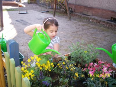 Die Kinder stehen jetzt jeden Tag vor unserem Hochbeet um zu schauen, ob die Blumen schon etwas gewachsen sind.