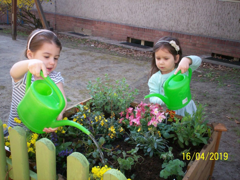 Die Kinder stehen jetzt jeden Tag vor unserem Hochbeet um zu schauen, ob die Blumen schon etwas gewachsen sind.