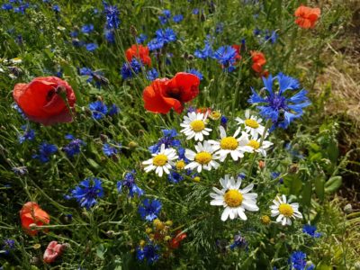 Im April 2019 wurde die Blühwiese mit 400 m² erneuert und um ca. 350 m² erweitert.
