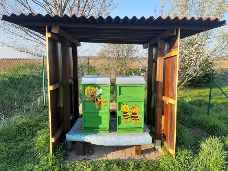 Die beiden Kästen mit jeweils einem Bienenvolk sind das Kernstück der Arbeit im Berufsvorbereitungsjahr. Seit April 2018 wurde durch unser Projekt eine „Blühwiese“ mit einer Fläche von 400 m² für Insekten und Bienen angelegt.