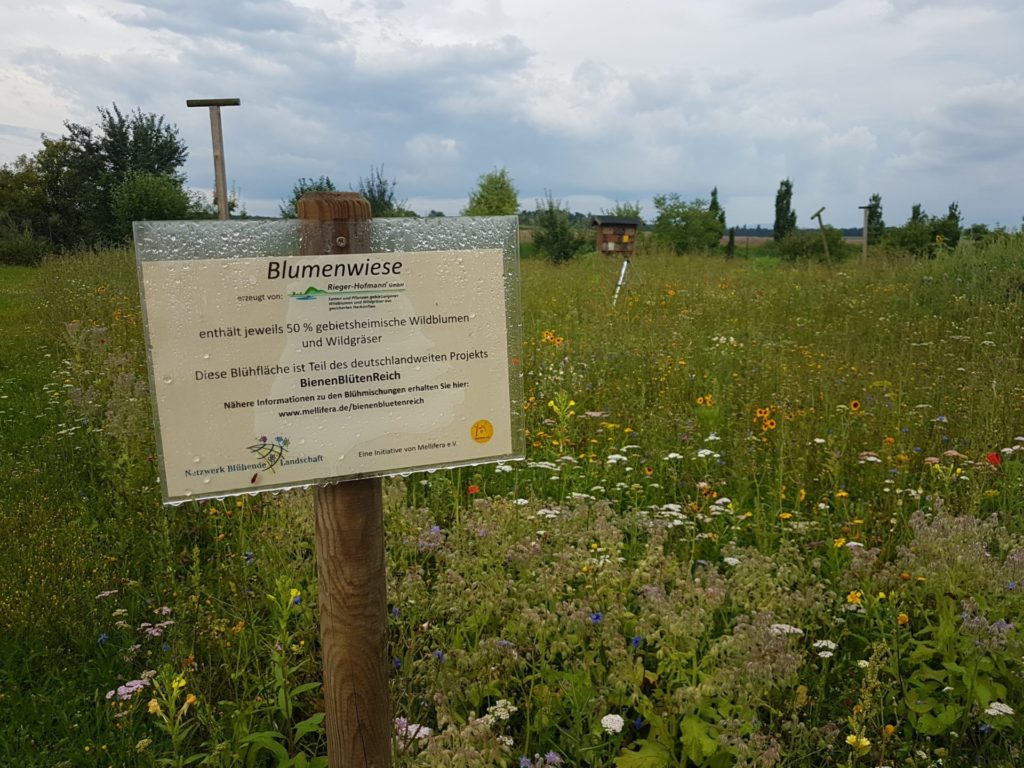 Im April 2019 wurde die Blühwiese mit 400 m² erneuert und um ca. 350 m² erweitert.