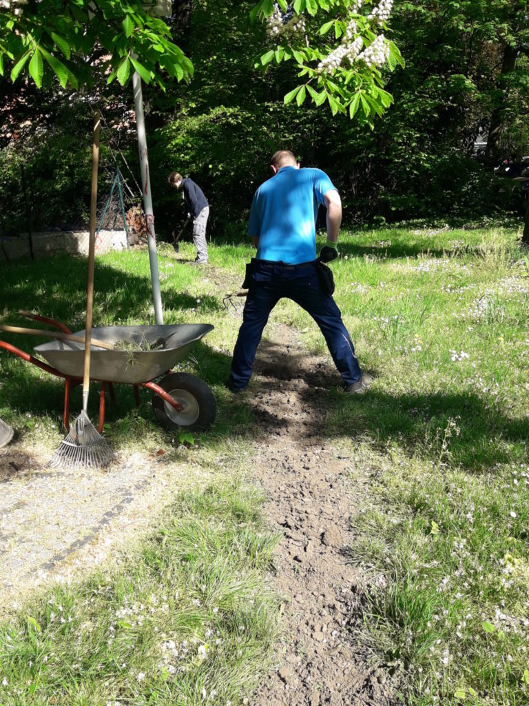 Wir sind eine gemischte Truppe aus Verwaltungskräften und Gartenlandschaftskräften unter Anleitung unseres Gatenlandschaftsmeisters