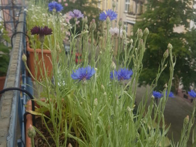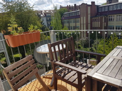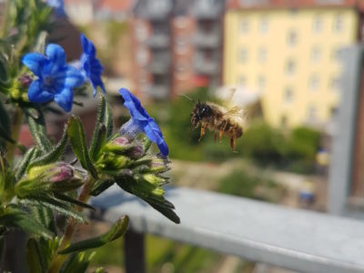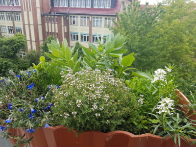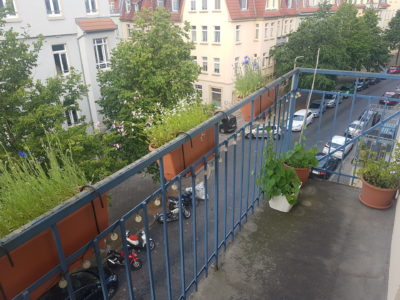 Wir, eine chaotische, liebenswürdige und leicht verrückte Mädels-WG im Herzen der Thüringischen Landeshauptstadt Erfurt hat sich dieses Jahr dazu Entschlossen unsere Balkone mit unseren summenden Freunden zu teilen. Da wir schon viele Tage und Nächte, egal ob zum Frühstücken, zum Sonnen, zum gemeinsamen Abendessen, zum gemütlichen Beisammensitzen oder für diverse durchgequatschte Nächte, auf unseren Balkonen verbracht haben, dachten wir uns: Warum sollten nur wir uns auf unserem Balkon wohl fühlen? Warum sollen nur wir hier leckeres Essen und Trinken zu uns nehmen dürfen? Die WG besitzt zwei Balkone, einen kleineren der nach Norden ausgerichtet ist und deshalb nur morgens Sonne abbekommt und einen größeren Balkon, der nach Süden, in einen grünen Innenhof zeigt und auf dem man ab Mittags, bis sie abends untergeht, die Sonne genießen kann. Also perfekte Voraussetzungen für allerlei Arten von blühenden und duftenden Pflanzen. Wie es häufig in WGs üblich ist, war, bevor wir das Abenteuer ‚Insektenfreundlicher Balkon‘ angegangen sind, auf den Balkonen nicht viel los, was Pflanzen und besonders Insekten betrifft, sie waren eher Mittel zum Zweck. Nach einem anstrengenden Wochenende, mit viel Geschleppe und etwas Schweiß wandelten sich die Balkone schon bald in Grüne Oasen, die seitdem viel Anklang, bei den Bewohnern und den Besuchern - egal ob summend und fliegend, oder auf zwei Beinen laufend – finden. Vor allem der Südbalkon wird von unseren fliegenden Freunden seither ausgiebig angeflogen, begutachtet und genossen. Und wir genießen es ebenfalls und freuen uns über jede Biene, Hummel, oder was sonst noch zu Besuch kommt. Denn jeder grüne und blühende Balkon, jede noch so kleine Blume, unterstützt die Artenvielfalt und sorgt dafür, dass unsere Biodiversität nicht verloren geht.