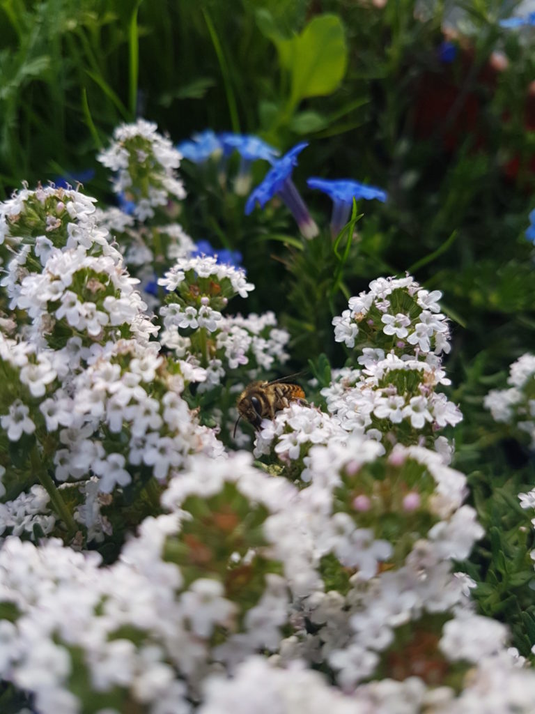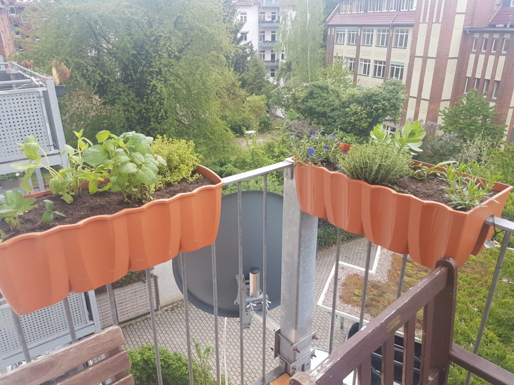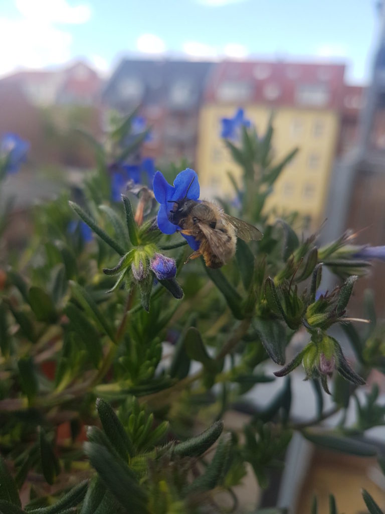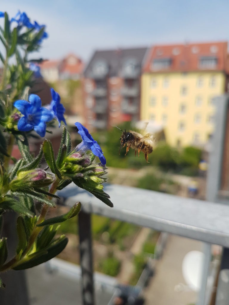 Wir, eine chaotische, liebenswürdige und leicht verrückte Mädels-WG im Herzen der Thüringischen Landeshauptstadt Erfurt hat sich dieses Jahr dazu Entschlossen unsere Balkone mit unseren summenden Freunden zu teilen. Da wir schon viele Tage und Nächte, egal ob zum Frühstücken, zum Sonnen, zum gemeinsamen Abendessen, zum gemütlichen Beisammensitzen oder für diverse durchgequatschte Nächte, auf unseren Balkonen verbracht haben, dachten wir uns: Warum sollten nur wir uns auf unserem Balkon wohl fühlen? Warum sollen nur wir hier leckeres Essen und Trinken zu uns nehmen dürfen? Die WG besitzt zwei Balkone, einen kleineren der nach Norden ausgerichtet ist und deshalb nur morgens Sonne abbekommt und einen größeren Balkon, der nach Süden, in einen grünen Innenhof zeigt und auf dem man ab Mittags, bis sie abends untergeht, die Sonne genießen kann. Also perfekte Voraussetzungen für allerlei Arten von blühenden und duftenden Pflanzen. Wie es häufig in WGs üblich ist, war, bevor wir das Abenteuer ‚Insektenfreundlicher Balkon‘ angegangen sind, auf den Balkonen nicht viel los, was Pflanzen und besonders Insekten betrifft, sie waren eher Mittel zum Zweck. Nach einem anstrengenden Wochenende, mit viel Geschleppe und etwas Schweiß wandelten sich die Balkone schon bald in Grüne Oasen, die seitdem viel Anklang, bei den Bewohnern und den Besuchern - egal ob summend und fliegend, oder auf zwei Beinen laufend – finden. Vor allem der Südbalkon wird von unseren fliegenden Freunden seither ausgiebig angeflogen, begutachtet und genossen. Und wir genießen es ebenfalls und freuen uns über jede Biene, Hummel, oder was sonst noch zu Besuch kommt. Denn jeder grüne und blühende Balkon, jede noch so kleine Blume, unterstützt die Artenvielfalt und sorgt dafür, dass unsere Biodiversität nicht verloren geht.
