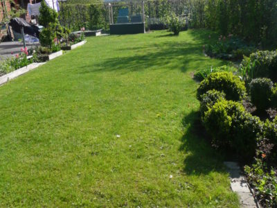 Der Garten unseres Einfamilienhauses ist in zwei Bereiche geteilt. Er diente lange Zeit als Spiel- und Fußballplatz für unsere Kinder. Seit letztem Jahr sind wir nun dabei, die beiden Flächen umzugestalten, da die Kinder sie nicht mehr zum Spielen benötigen. Aus dem Sandkasten ist ein Gemüsebeet geworden, ein zweites Hochbeet und ein Tomaten-Hochbeet sind hinzugekommen. Wir kompostieren den Bioabfall komplett selbst in zwei Thermokompostern und 2 Gitterkompostern. Der reife Kompost wird direkt auf die Beete verteilt. Auf Pestizide verzichten wir und gedüngt wird mit selbstangesetzter Brennesseljauche.