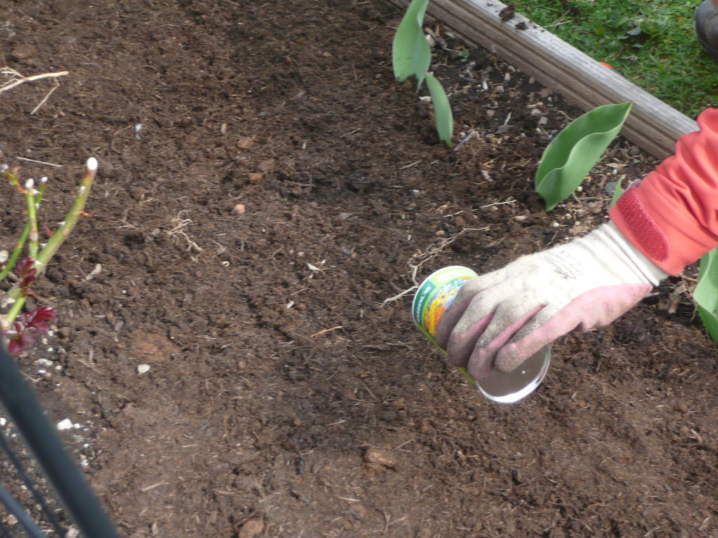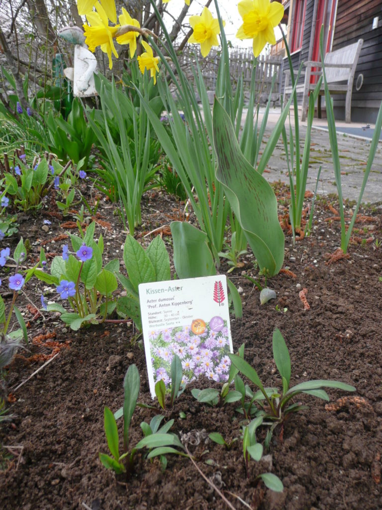 Letztes Jahr im Herbst haben wir viele Osterglocken- Tulpen- und Aliumzwiebeln eingesetzt, Traubenhyazinthen und Krokusse gab es schon länger. Ebens0 kam eine Weinrebe hinzu, die das neue Tomatenhochbeet erobern soll.