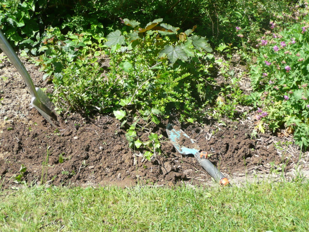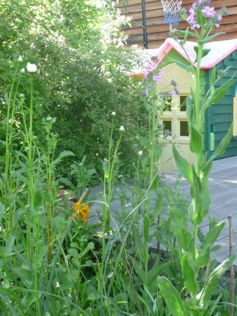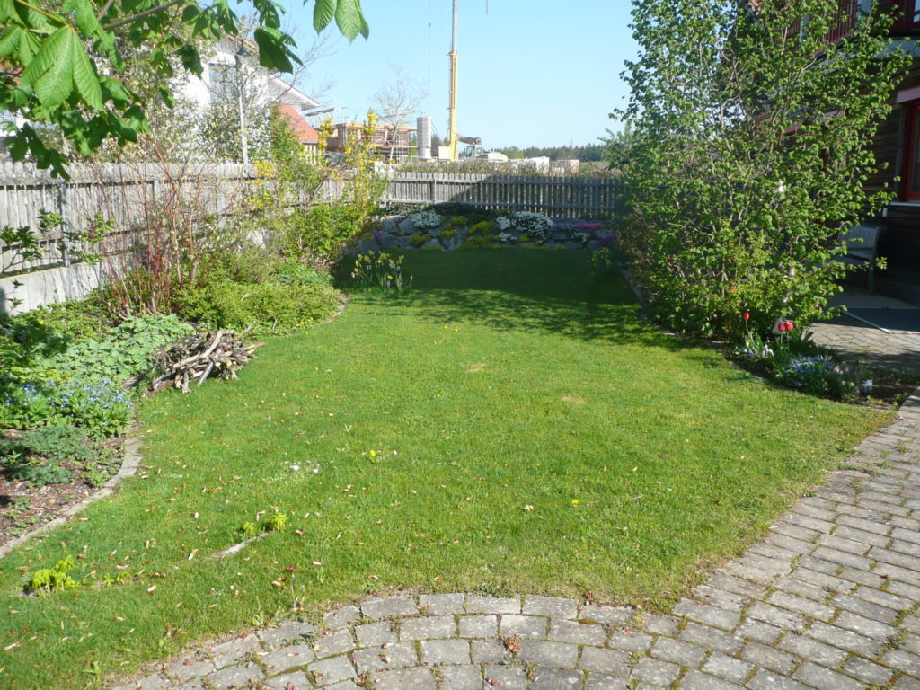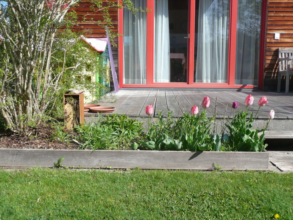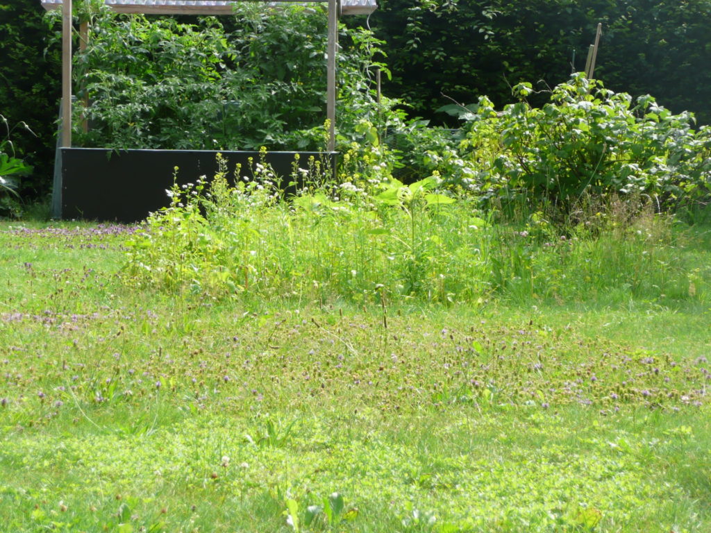 Ganz neu ist das Wildblumenbeet auf der Rasenfläche, das hoffentlich bald zum Blühen kommt.